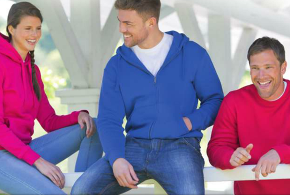 SKY Pro:n mainostekstiilit kattavat laajan valikoiman työvaatteista aina tavallisiin t-paitoihin ja huppareihin.